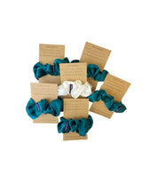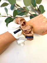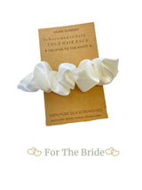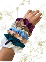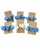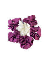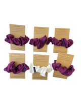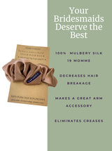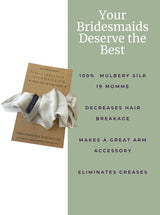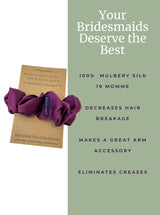 Pop the question with one of our Bridal Proposal Scrunchie Sets! Each set comes with 5 Colored Scrunchies for Bridesmaids and 1 White Scrunchie for the Bride for a total of 6 silk scrunchies.