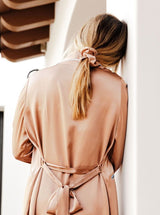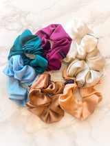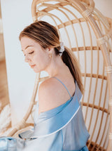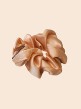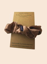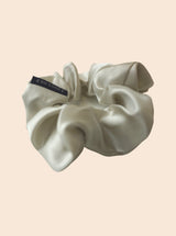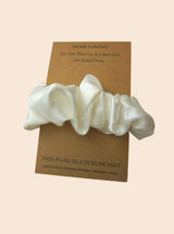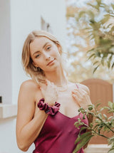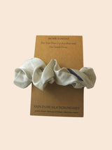This super soft scrunchie is made with 19 momme Mulberry Silk. Because silk has a molecular structure that keeps moisture in your hair, this scrunchie is able to reduce frizz, tangles, static and creases, leaving your hair silky and free from ridges and that damaging tug.