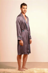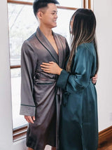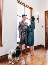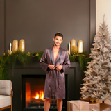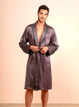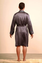 Unisex Silk Midi Smoking Robe · Charcoal Grey · Extended Sizing