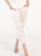 The most comfortable joggers meets the work slack. These luxuriously soft pull-on pants are cross-legged tested so you can sit comfortably all day long while the feminine wave detail adds a sliming effect that helps you transition these from the boardroom to the bedroom.