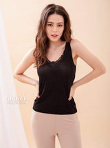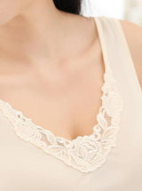 Women's Lightweight Knit Silk Embroidered V-Neck Tank Top