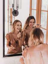 Our favorite Button Up top now in a new classic color! Sunset rose is a caramel light brown color with a touch of pink undertone.